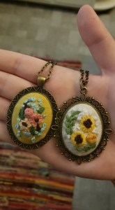 During her free time, Gracie loves to create. Painting, embroidery you name it, she can do it! She got into embroidery when she came upon a starter set at a church yard sale. She tried the small starter kit and absolutely adored it so she kept making larger and larger pieces!