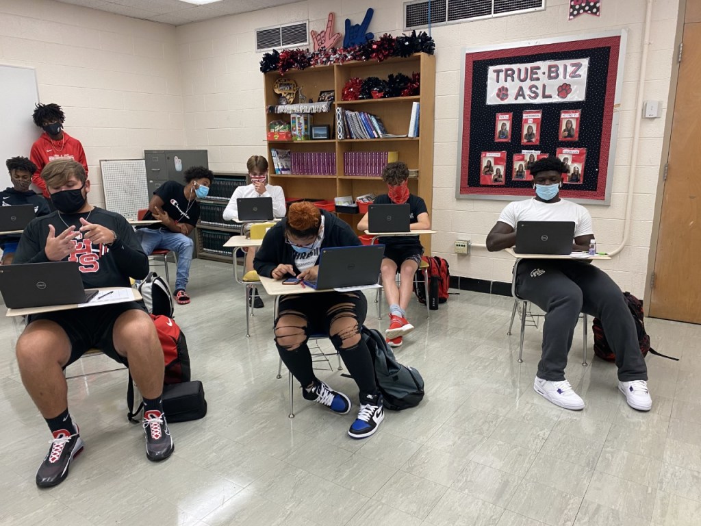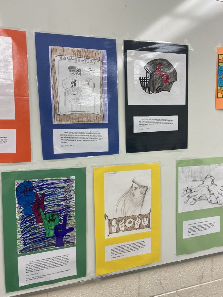 We are lucky that Deaf people can use videophones and zoom to connect. I have seen some people doing zoom game nights to still connect and socialize. We are very thankful for technology so that Deaf people are not completely shut off from each other.” It warms my heart to know that even in the circumstances that we are dealing with right now, they are finding ways to get through it and still connect and be with each other. Among the Deaf community as a whole having a big change throughout this time, the ASL club has also gone through some changes. I asked her (Mrs. Lawson) “How have things been different with the ASL club being virtual versus being in person?” And her response was this, “Last year, our ASL club did a lot of community service. It has been extremely difficult to host the club virtually. We have had a few meetings, but we cannot serve the community in the capacity that we did last year.