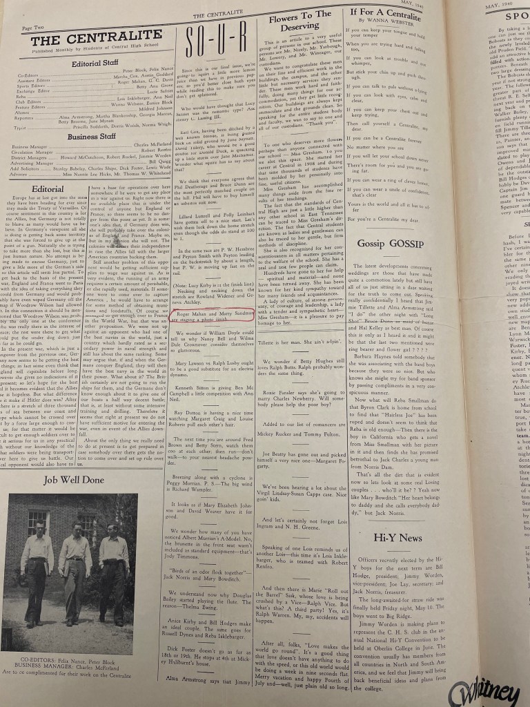 The cliche of high school gossip is nothing new. A rumor spreads around the school, or people will share the latest “news,” but all of this bears no weight in comparison to the SOUR section of the old 1940s Central High School newspaper, or The Centralite.