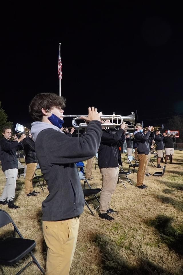 During Central’s 2020 football season, for example, the band played on the sidelines while the dance and cheer team remained in their traditional spots. Aerosols produced from band instruments forced this change, as it’s the central medium COVID-19 spreads through. (On the right, Thomas Hooper plays his trumpet at the CHS v. South Doyle Playoff Game 11-20-20)