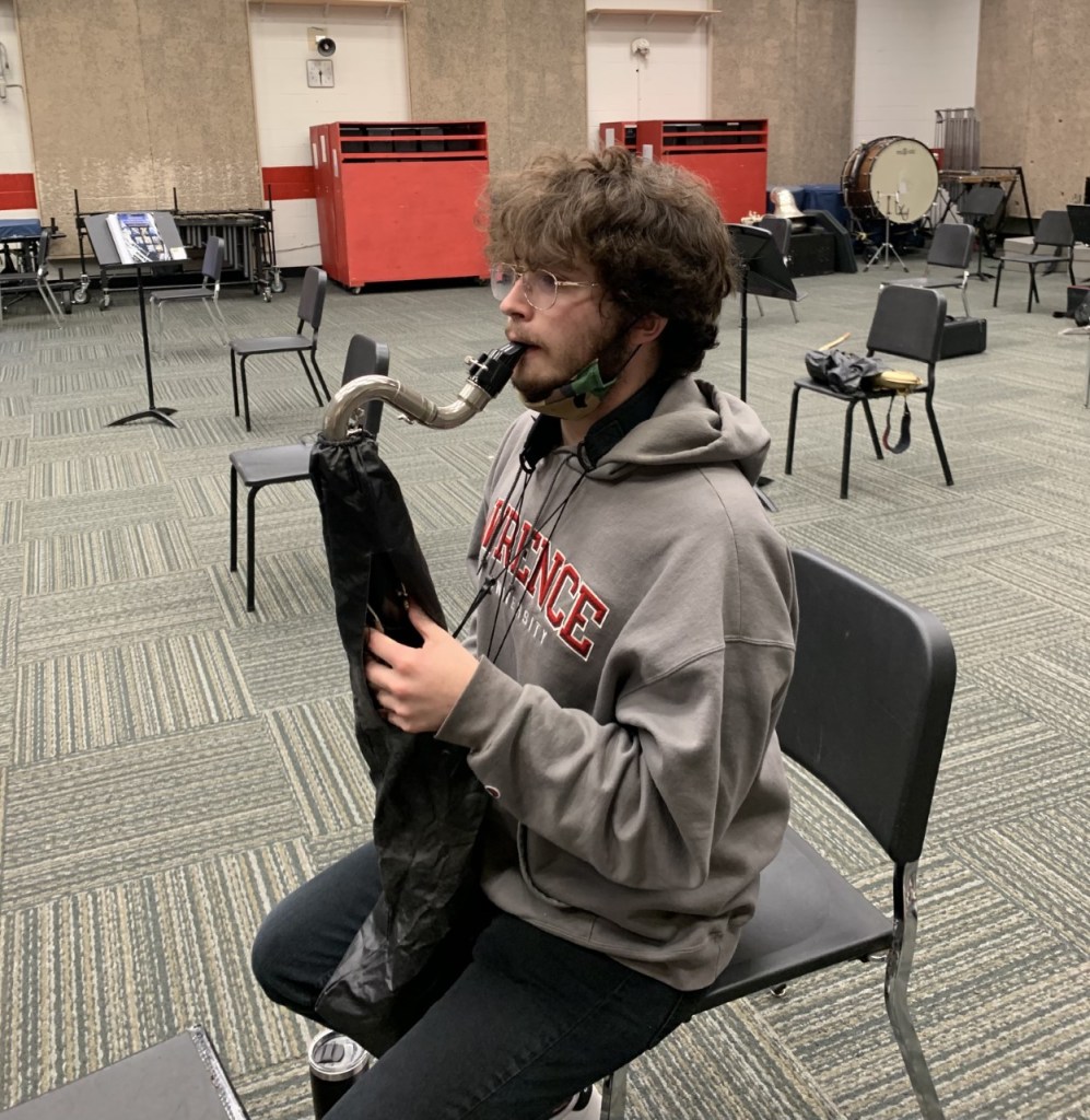 If the judges found your performance skillful enough, you’d be placed in a system ranked by chairs. (In any musical ensemble, chairs from first to last indicate each player’s skill) In each instrument group, the players who made first and second chair also made something called “All-State.” (On the left, Devin Hopson plays his bass clarinet during an after-school rehearsal.)
