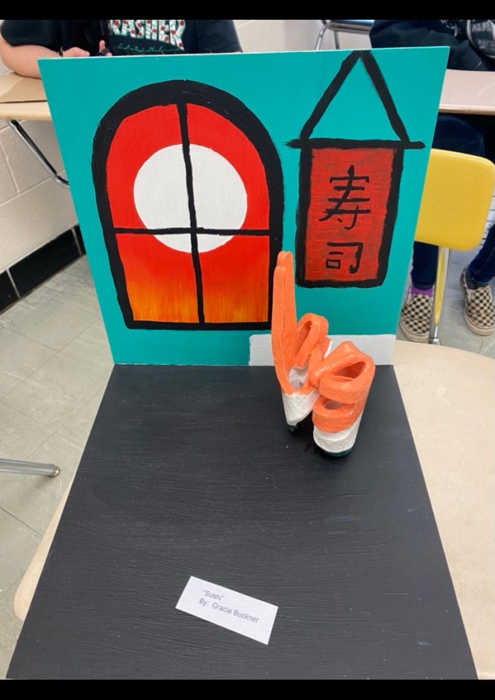 Picking a handshape and molding hands out of clay was something new for a few students in ASL 3. Mrs. Sigmon allowed the class into her room for two weeks to teach and supervise the art process of cutting handshapes to painting boards. Once all the hands and boards were painted Mrs. Lawson helped each student glue the hands to the board.