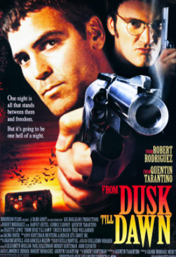 From Dusk Till Dawn is an action horror film directed and edited by Robert Rodriguez, and written by Quentin Tarantino who also stars in the film. The film stars George Clooney and Quentin Tarantino as 2 criminal brothers on the run who take a family hostage and try to get across the border with them, only to stop at a club where they encounter vampires. The film did well at the box office but garnered mixed reactions at the time of its release. It has garnered some acclaim and has since been considered a cult classic.