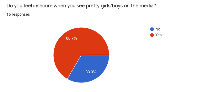 Some Central students said that they weren’t obsessed with their phones, but people are different in many ways. Some people have things to do and they are barely on their phones. A student said “No, because when I’m not on my phone I am actively doing something else.” Another survey question was “Do you feel insecure when you see pretty girls/boys in the media?” 66.7% said yes and 33.3 said no. In the survey it asks why they feel that way and one student said “It’s hard to feel like you live up to the beauty standards that social media sets for young adults. We’ve always been taught to compare ourselves, think of ways we can be better, instead of appreciating the bodies we have and just learning to be happy and healthy in our own way.”