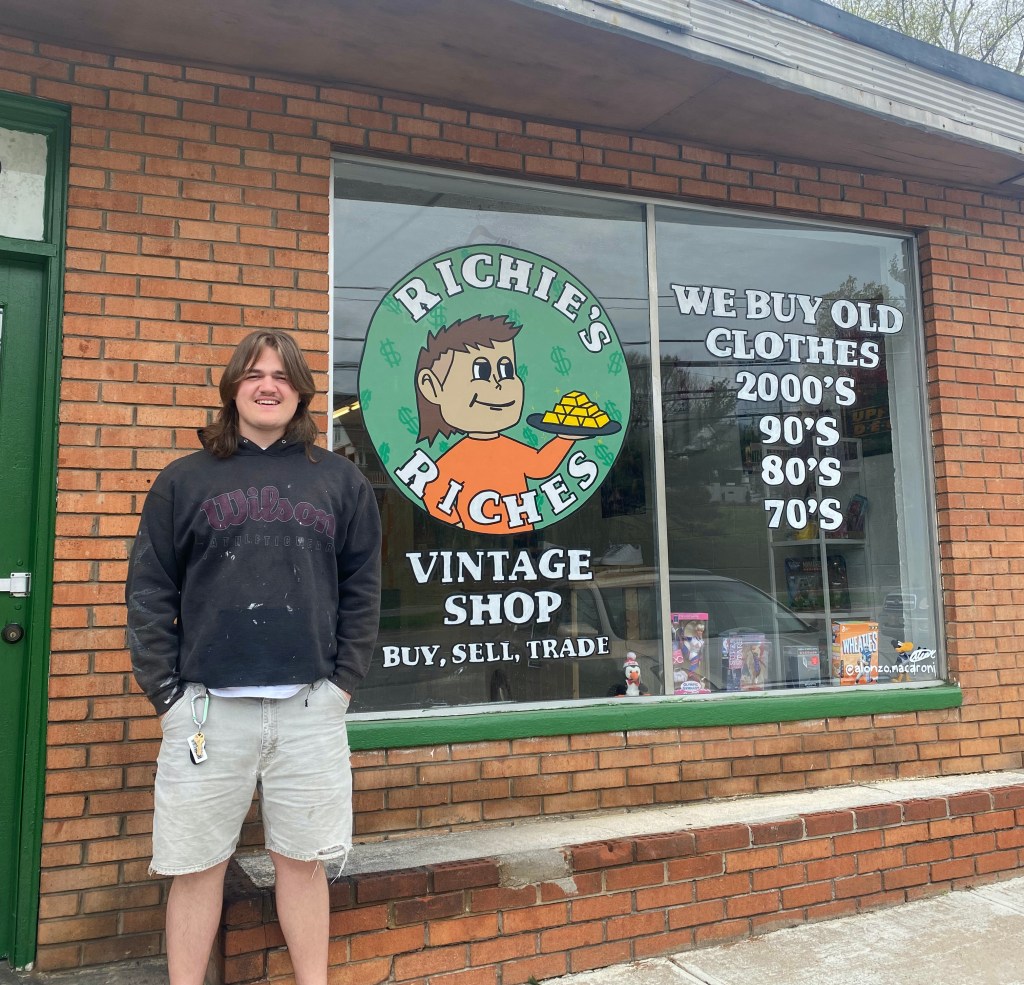 “In the beginning, I only went thrifting… for myself, for cool clothes for cheaper” he said, but as he entered high school, he began to sell clothes online for profit. Balancing school, a social life and his new passion of selling clothes, Richie would thrift any time he could. “I already had a part-time job, so any day that I didn’t go to work right after school I had a circle of thrift stores I would do in Knoxville, three times a week” (Knoxville News Sentinel).