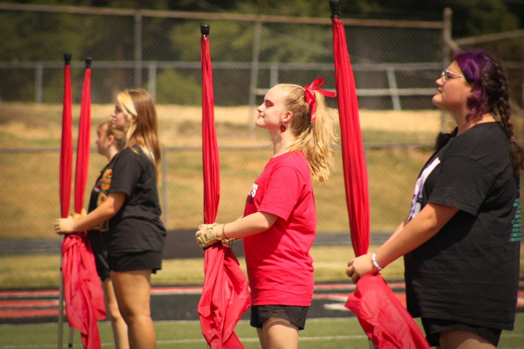 Color guard is more than just a team, it’s a support system. When one girl was struggling with the 45 flag toss, another stepped in and helped. With a mix of skill, effort, and some tough love from her teammates, she was able to do the toss. They rushed her, throwing their arms up and cheering in celebration.