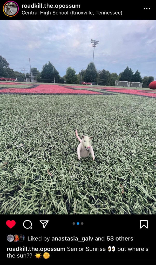 The color guard’s room is located in the band room and is quite cozy. It houses their costumes, equipment and bags. In the corner, they also have their band opossums, which is a tradition of theirs. Roadkill the Marching Opossum has his own Instagram account where he shares his band adventures with the world.