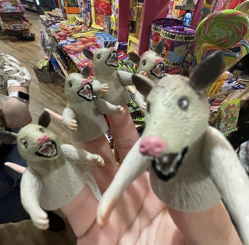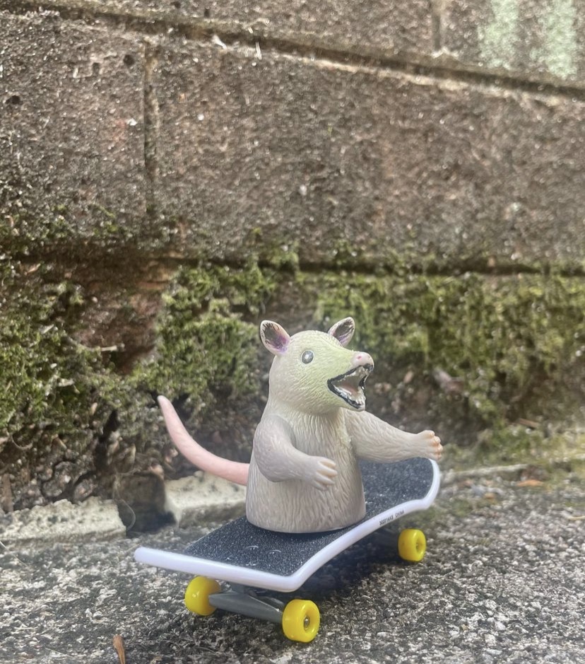 Roadkill, bought from the dollar store for 1 dollar in early July of 2023, Roadkill has become a band icon in his short life of only 5 months. Roadkill has become the unofficial icon for the band. Roadkill goes on many adventures with various band members. Most of the pictures he takes go on his Instagram, @roadkill.the.opossum.